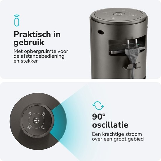The Bloomfold Tower Fan is designed with your convenience in mind. With a few pushes of a button you can set the desired speed and mode. Thanks to the included remote control you can easily operate the fan from any corner of the room. The timer function allows you to have the fan switch off automatically after a certain time, which saves energy.