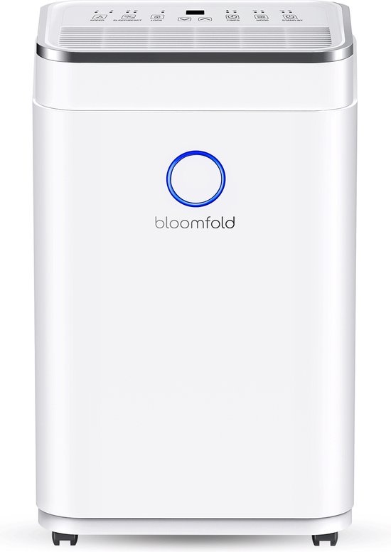The Bloomfold dehumidifier has numerous useful functions such as the wash-dry function. In this special function, your laundry will dry faster than ever before, thanks to modern technology, the moisture is extracted from the air at lightning speed. This makes the laundry dry faster, you can also opt for 360° Airflow, then the dehumidifier dehumidifies continuously until all the moisture has been extracted from the air, suitable for flooded rooms. Finally, the dehumidifier also has a timer function, sleep mode and child lock!