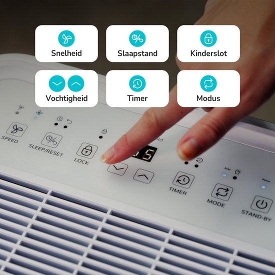 Thanks to the handy LED indication, you always have insight into the status of the dehumidifier and you can easily adjust the settings. This way you can see at a glance whether a room is too humid.
