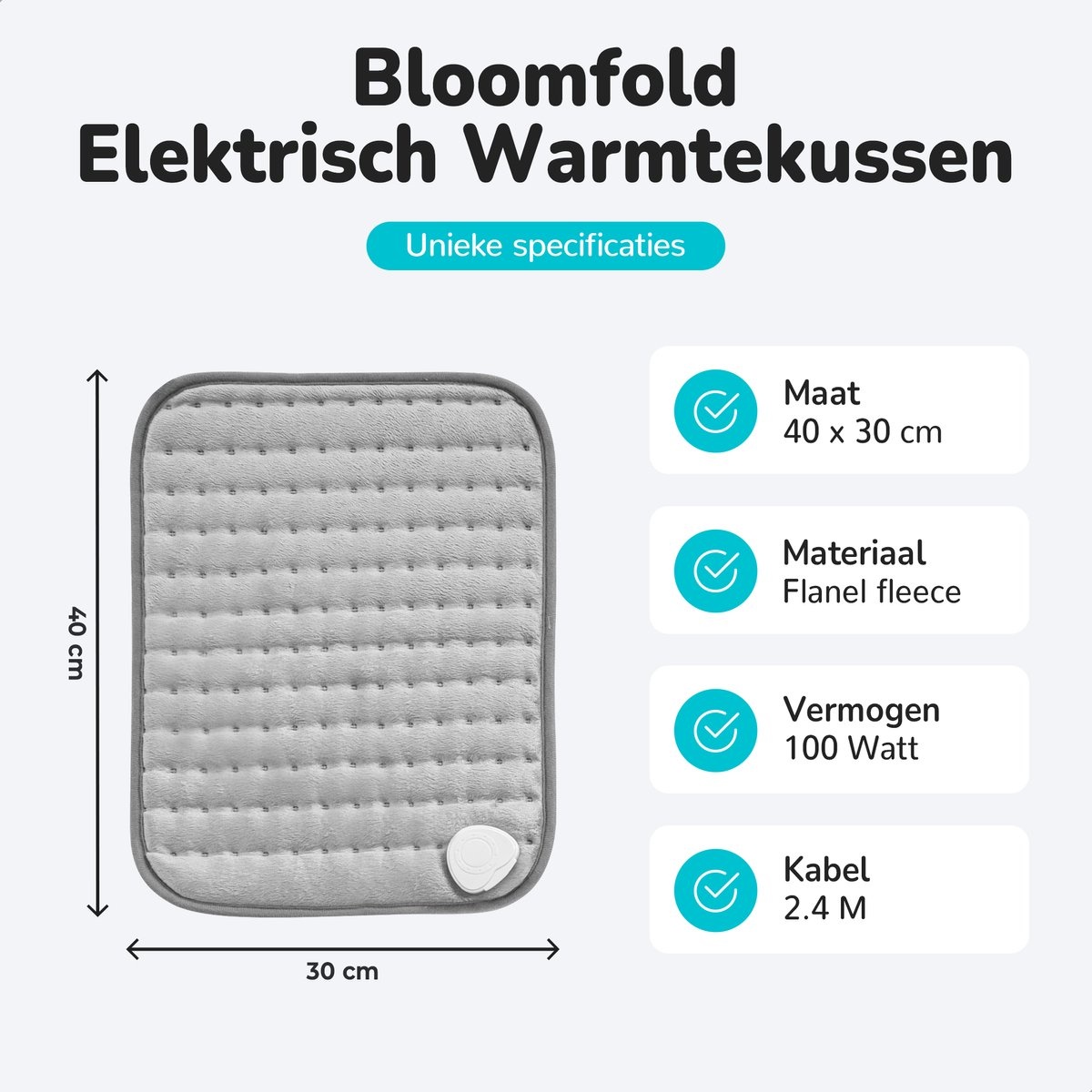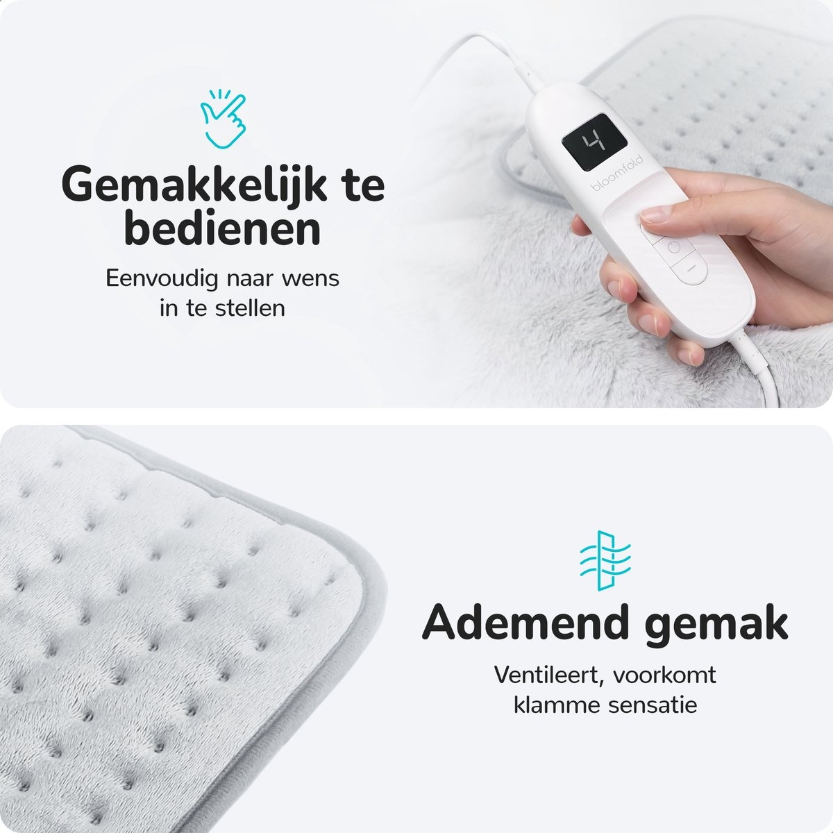 This electric heating pad is not only spacious at 40 x 30 cm, but also extremely efficient in heating. That is of course nice if you want to go to sleep quickly and still want to be warm! With 100W, the Bloomfold heating pad is energy-efficient and heats up super fast, in just 20/25 minutes the pillow is wonderfully warm! The pillow will then remain warm on the selected timer setting, after which it will switch off automatically.