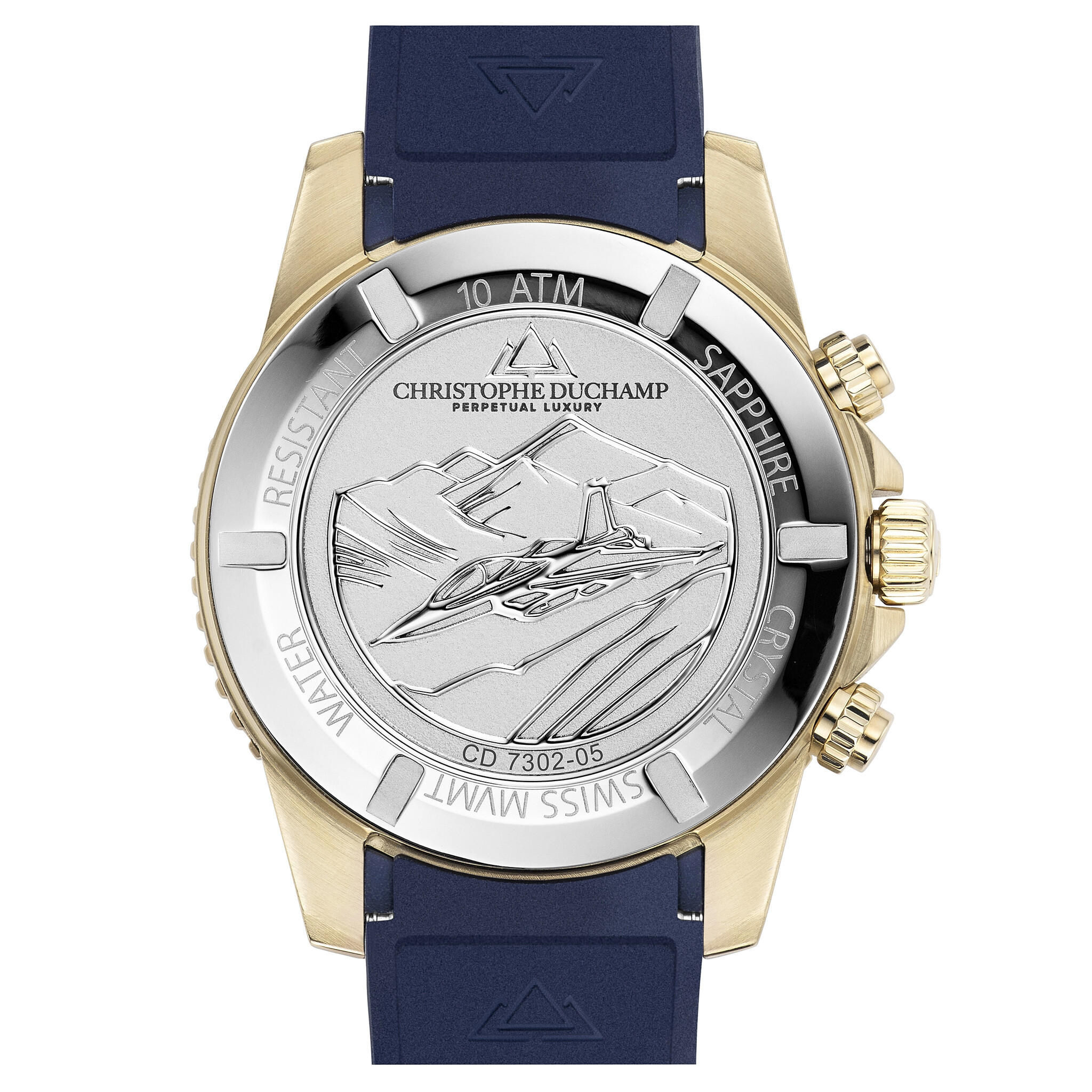Aangedreven door het Zwitserse Ronda Z60-uurwerk biedt dit model precisie met een volledig functionele navitimer chronograaf. De tachymeter bezel en de gegraveerde caseback met jet-detail benadrukken het luchtvaartkarakter.